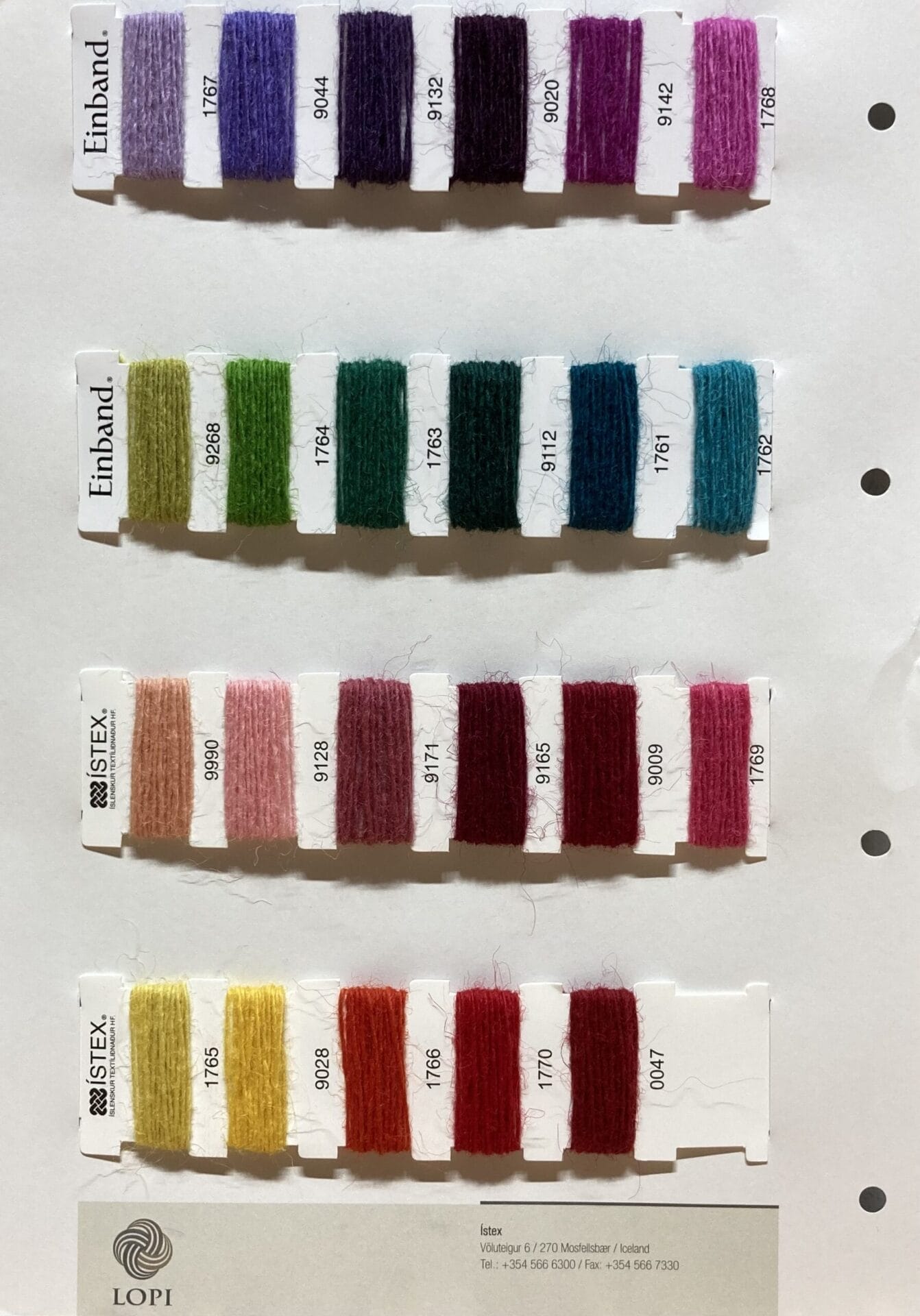 Die Farbkarte der Lopi Einband enthält neben den Farben alle wichtigen Informationen zu dem Garn wie Lauflänge, Beschaffenheit, Waschvorschriften etc.